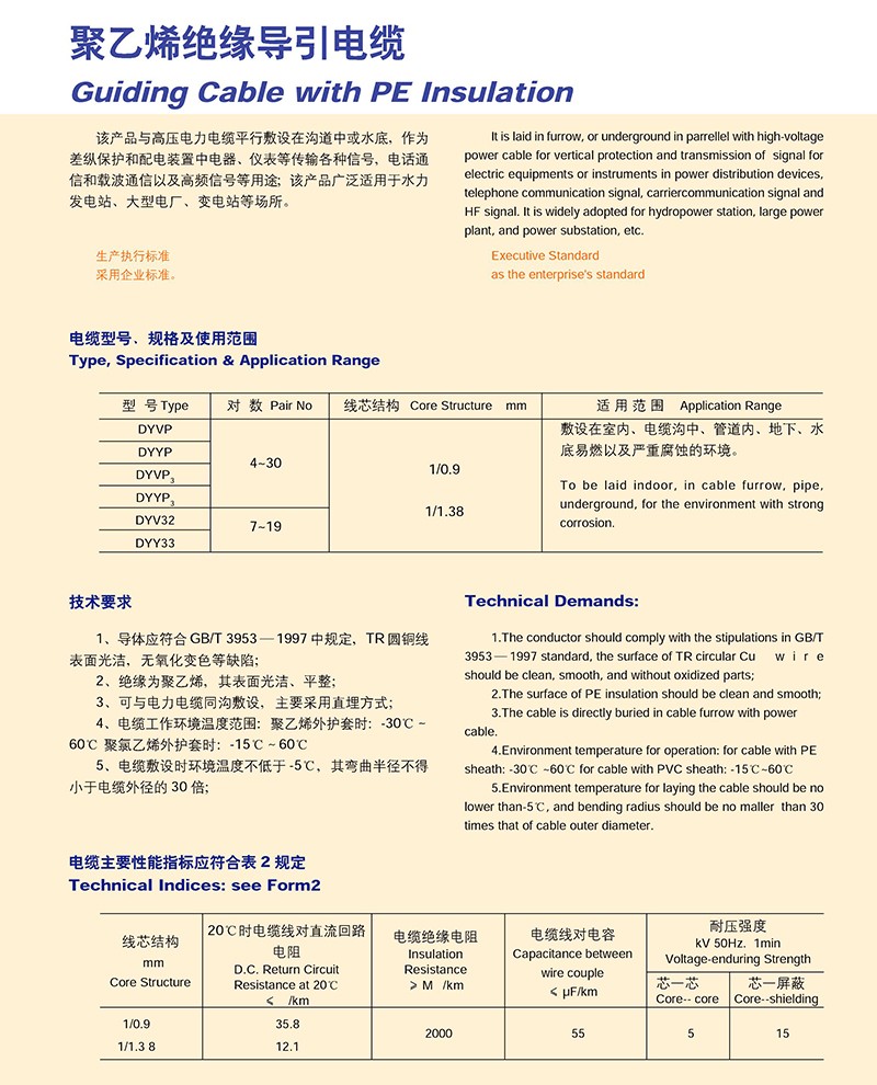 聚乙烯絕緣導(dǎo)引電纜的產(chǎn)品詳細(xì)介紹: