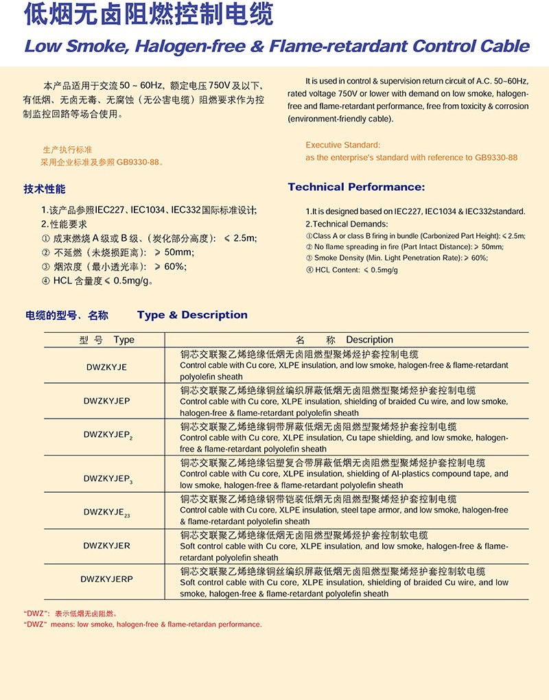 低煙無(wú)鹵阻燃控制電纜的產(chǎn)品詳細(xì)介紹: