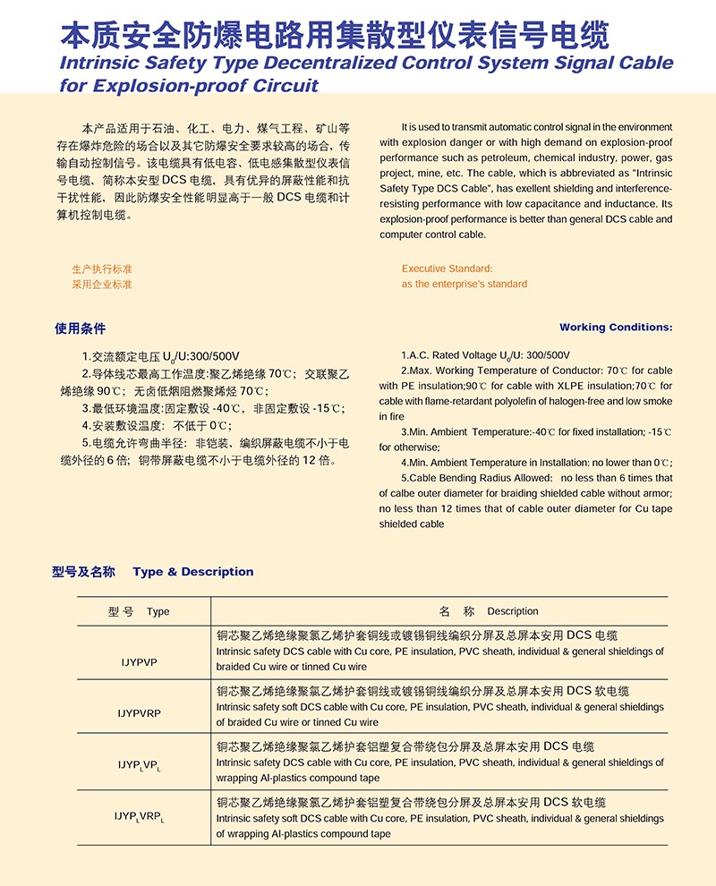 本質(zhì)安全防爆電路用集散型儀表信號(hào)電纜的產(chǎn)品詳細(xì)介紹: