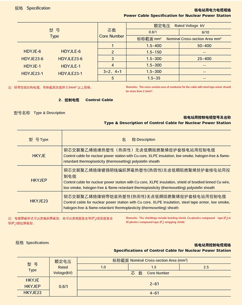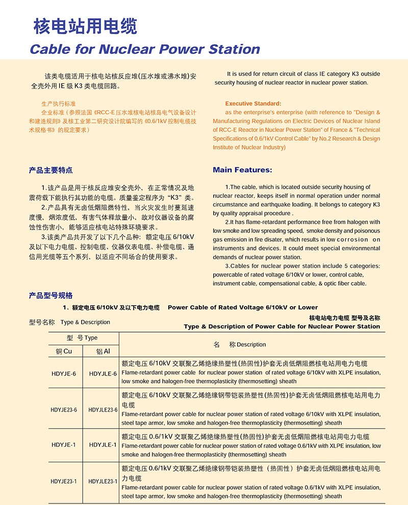 核電站用電纜的產(chǎn)品詳細(xì)介紹: