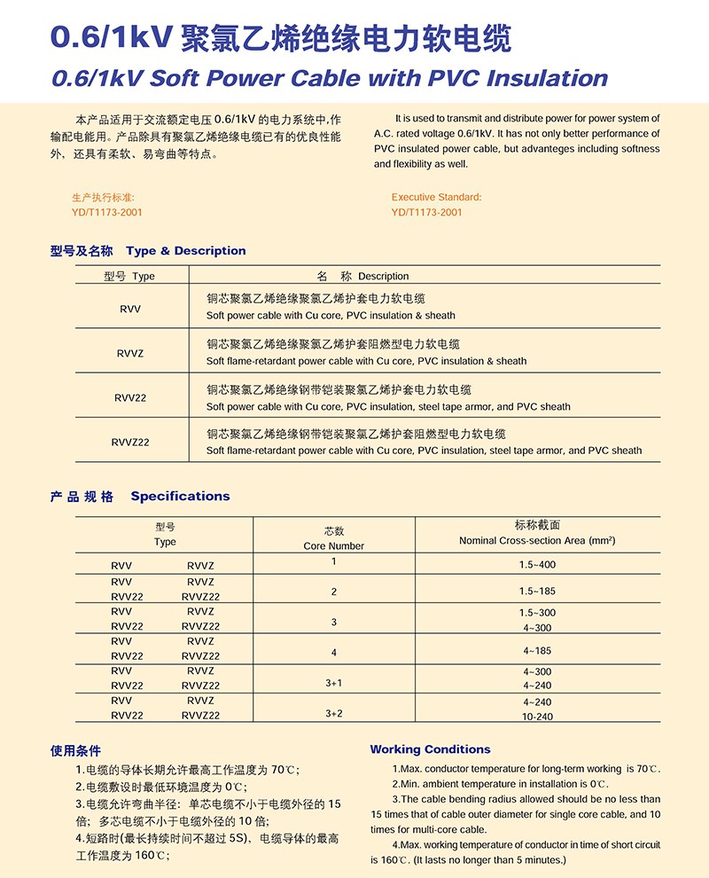 0.6/1KV聚氯乙烯絕緣電力軟電纜的產(chǎn)品詳細(xì)介紹: